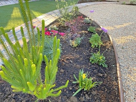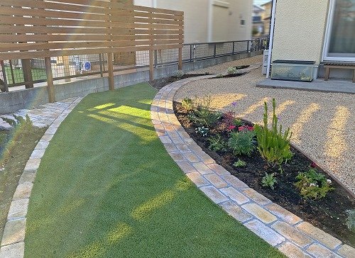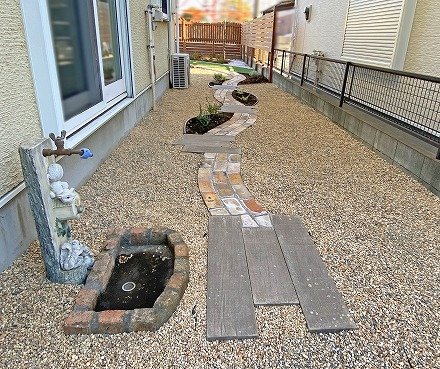 周りは化粧砂利にして、植栽部分はできるだけ土の面積を減らしてお手入れをしやすくしました♪