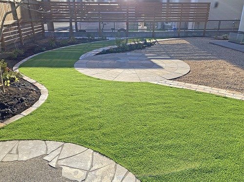 手が回らなくなっていた天然芝はなくして、手入れがらくちんな人工芝に✨