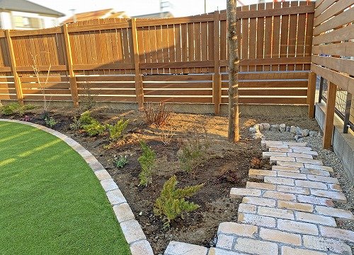 お庭の角にある水道メーターまで歩きやすいようにレンガの小道にしました!